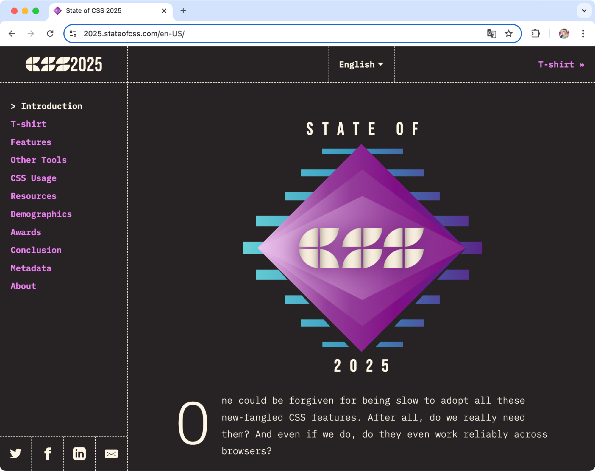 State of CSSとは、CSSエコシステムの最新動向を調査・分析し、世界中の開発者に共有するための年次レポートです。本連載では、これまでも「モダンCSS」(第5回)、「CSSフレームワーク」(第10回)でこのサーベイの結果を引用してきました。