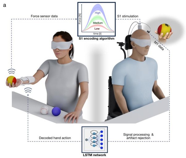 論文によると、研究チームは、重度の四肢麻痺患者が脳に埋め込まれた電極を通じて別の人間の手を無線制御し、その手が掴んだ物体の感触を識別できることを実証したという。