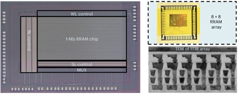 研究チームはこの課題に対し、「RRAM」(Resistive Random-Access Memory)を用いた新しいアプローチを実証した。RRAMは、電圧をかけて抵抗値を変化させることでデータを記憶する不揮発性メモリである。