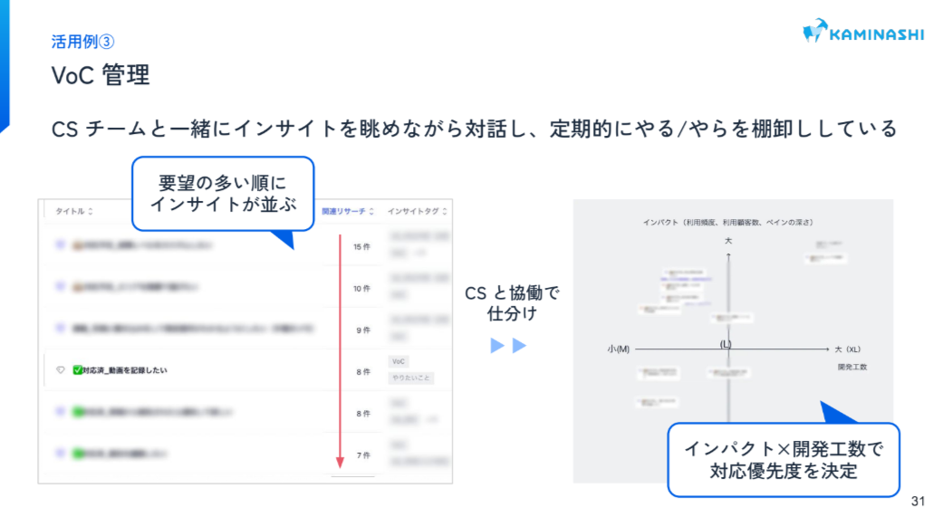 もちろん、プロダクトビジョンやセールス上の優先順位も加味しますが、ベースとして「最も多くの顧客が求めていること」から着手しているので「開発が外れていない」という実感があります。