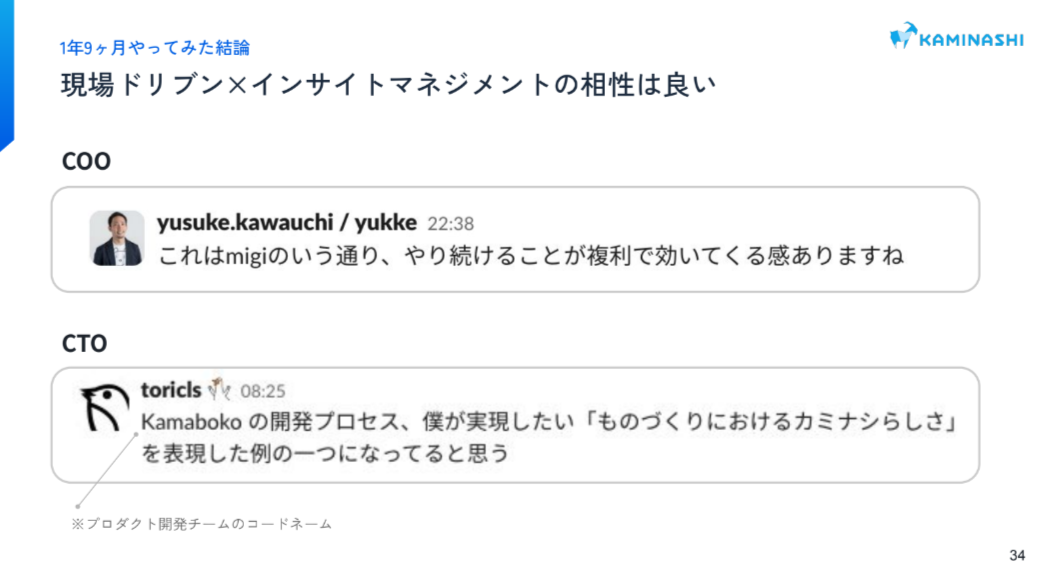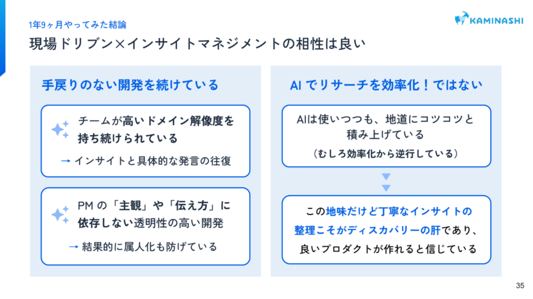 1年9ヶ月の実践を経て辿り着いた結論は、「現場ドリブンな開発」と「インサイトマネジメント」の相性はかなり良いということです。