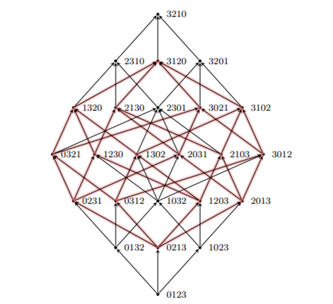 このルールに従って対称群全体を地図のように描くと、ある並べ方から別の並べ方への無数のルートが張り巡らされた、極めて複雑なネットワーク図が出来上がる。