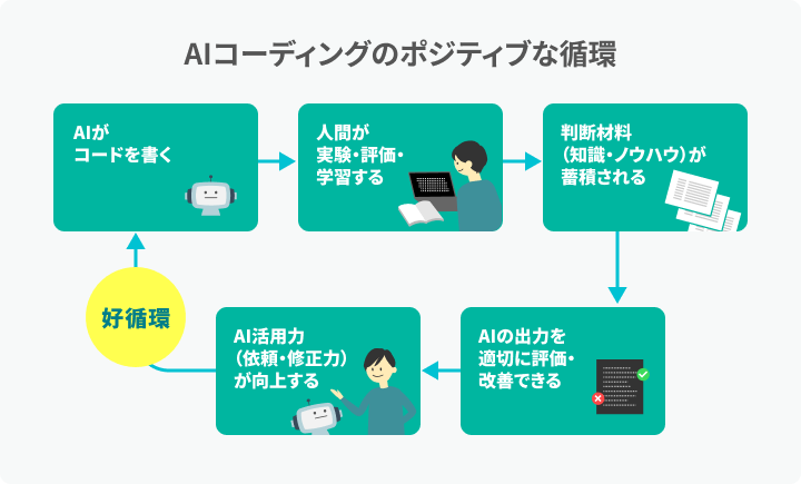 自分で問題を十分に理解した上で解決方法について考える。その経験があってはじめて、AIからの提案が適切かどうかを評価できます。例えば「この設計は拡張性に欠ける」と見抜くには、自分で拡張に苦労した経験が大きな助けになります。