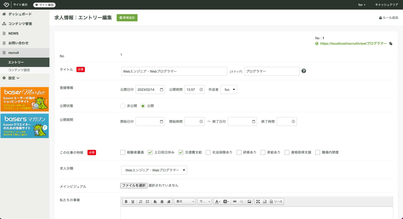 そうして、WordPressがプラグインで機能を追加していくのに対し、baserCMSはフレームワーク上で堅実にカスタマイズしていく。その「カスタマイズ性」で独自のポジションを築きたいと考えていました。