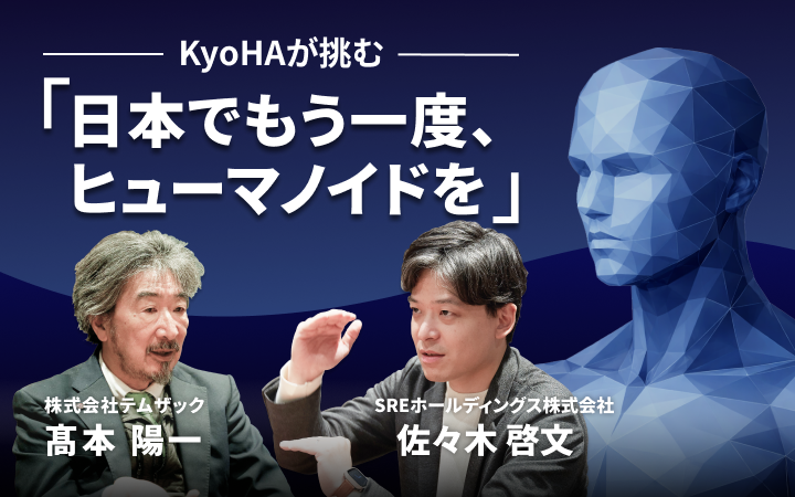 開発するヒューマノイドの技術的な全体構想を担う株式会社テムザック代表・髙本陽一氏、KyoHA事務局を運営するSREホールディングス株式会社・佐々木啓文氏にお話を伺うと、「日本のヒューマノイド開発は巻き返せる。だが、いまが最後のチャンス」だと危機感をにじませます。